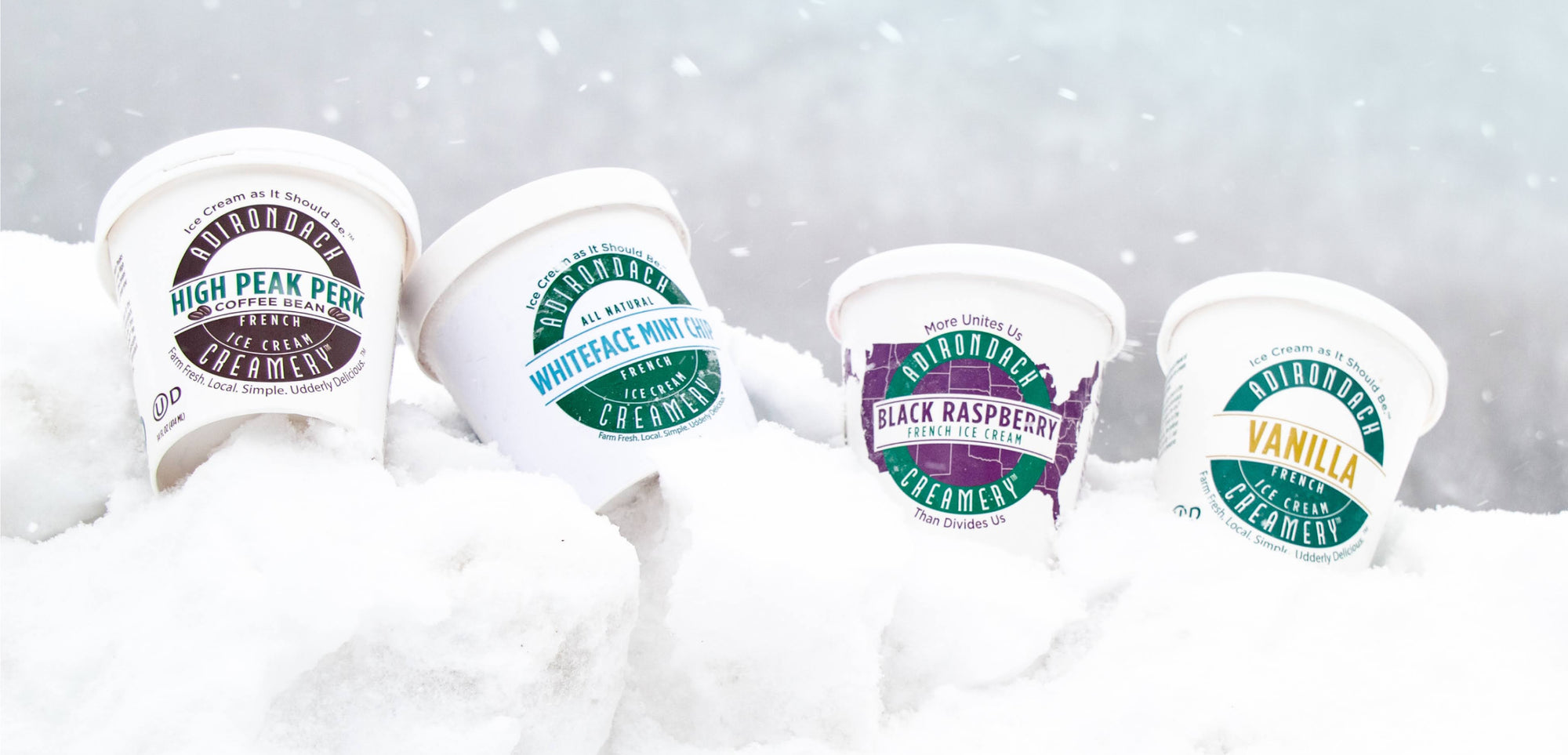 At Adirondack Creamery, we believe that local products are not only better for the environment and better for regional economies, but also when used without complex stabilizers, emulsifiers, artificial ingredients, or other additives/replacements are better for us and better for producing Udderly Delicious™ ice cream.