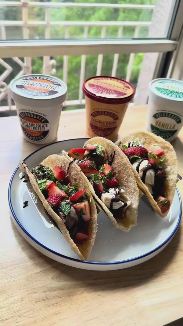 We’re putting a fun twist on a classic favorite — dessert tacos! A fusion of flavor, festivity, and pure ice cream joy.  🌮🍓🍫