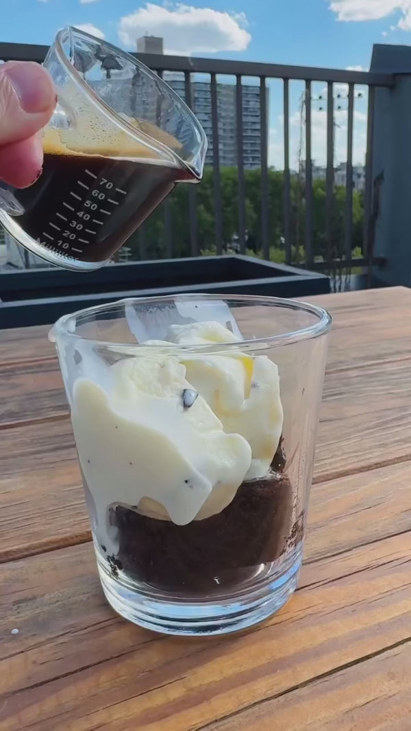 Our new nighttime dessert obsession — the Mint Chip Brownie Affogato Sundae made with Whiteface Mint Chip Ice Cream!